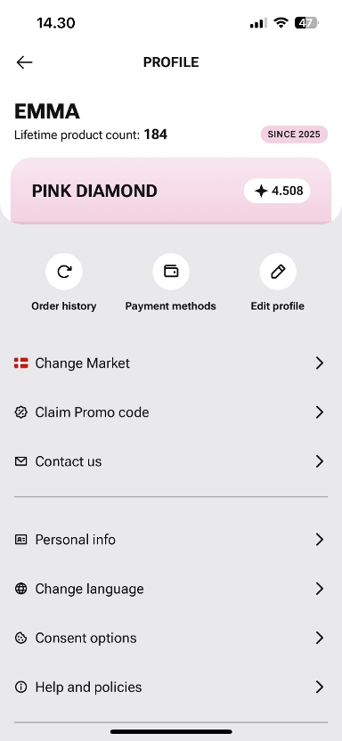Go to the Home page in the app → tap the small profile icon in the top left corner → select Order History → find the order you’d like the receipt for and tap See details → tap the Export button in the top right corner → download the receipt.